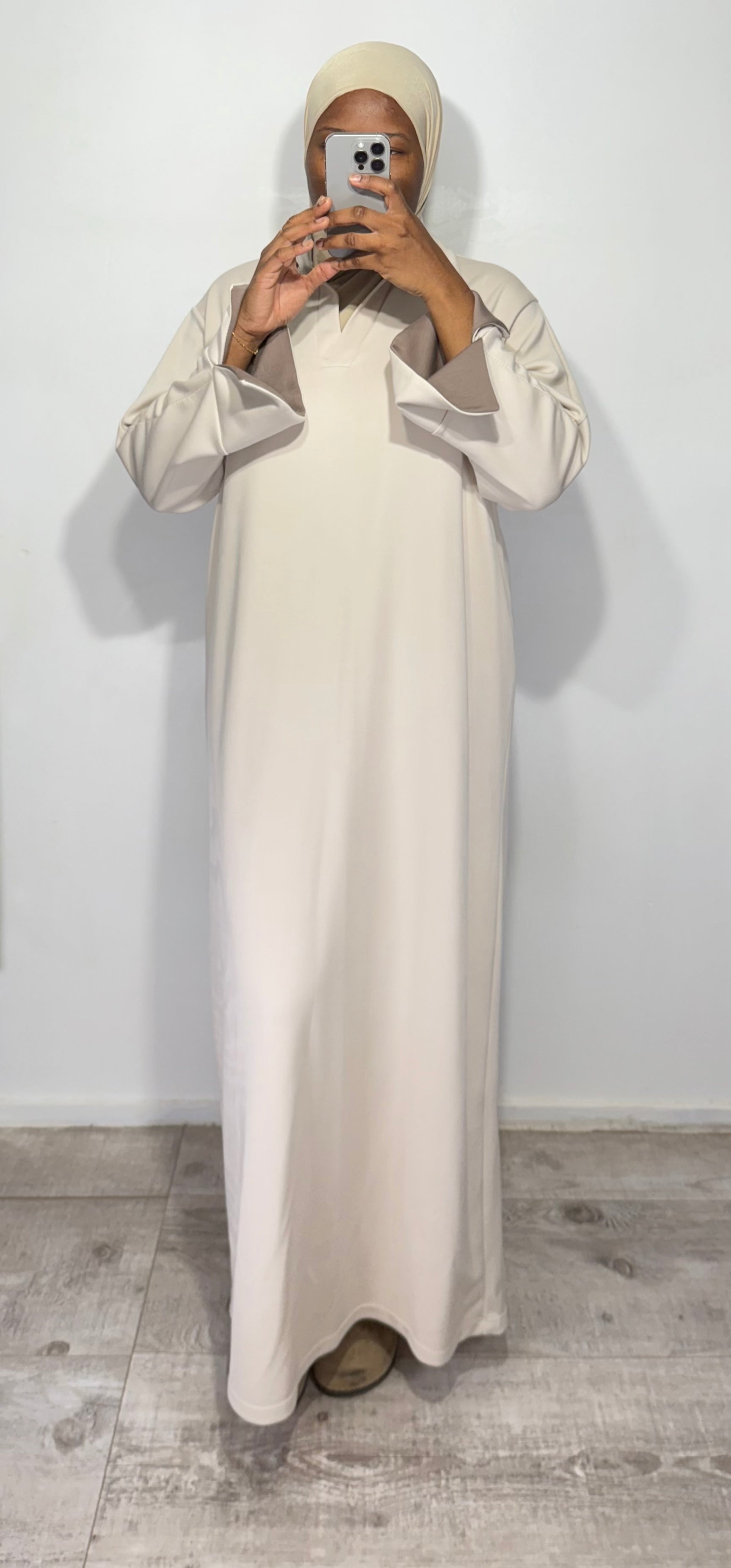 Robe col V manches retroussées – Effet sportswear chic